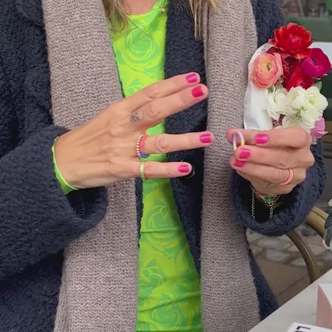 Die schlichten Emaille-Ringe sind dafür gemacht, deinen Look das ganze Jahr über zu färben. Mache deinen eigenen persönlichen Mix oder trage sie einzeln.