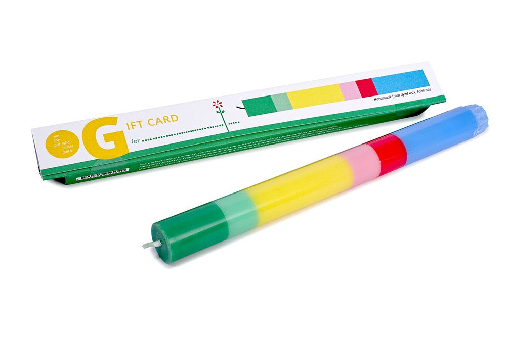 Es imponiert uns sehr, in welch aufwendigem Verfahren diese Kerzen entstehen: aus durchgefärbtem Wachs wird von Hand jeweils eine Farbschicht auf die nächste gegossen. Nur so ist es möglich, Farben mit soviel Präzision aufeinander abzustimmen. Zuletzt wird die Oberfläche für eine brilliante Farbwiedergabe ebenso von Hand poliert.
