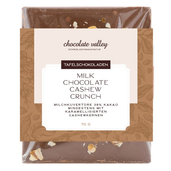 Milchkuvertüre 38% Kakao mind. mit karamellisierten Cashewkernen