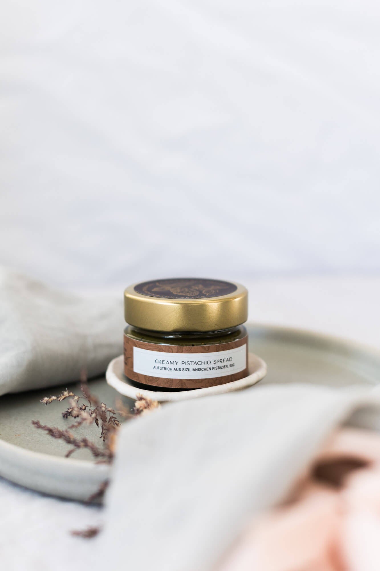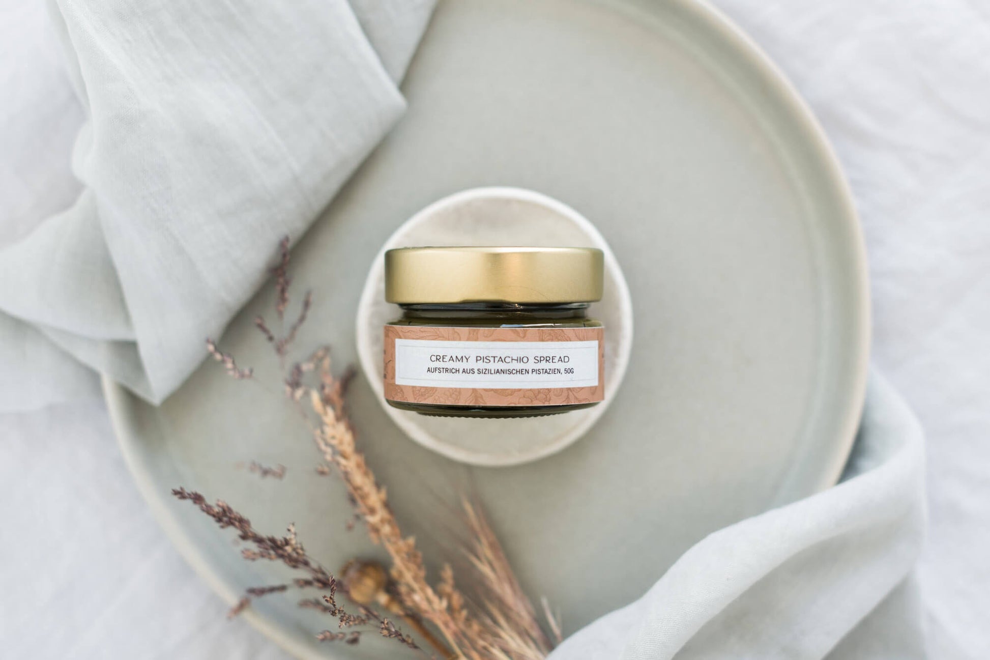 Mit knapp 50% sizilianischen Pistazien schmeckt dieser Aufstrich, wonach er schmecken soll – Pistazien satt.