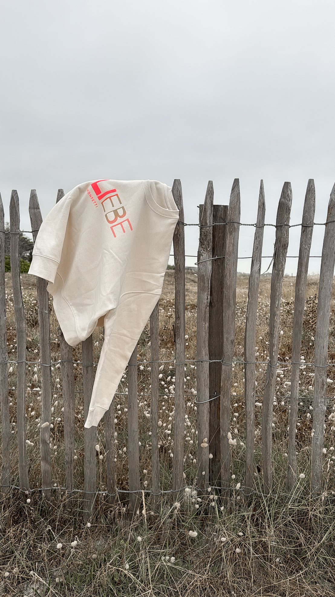 Das cremefarbene Sweatshirt hat ein ganz leichtes Sprenkelmuster, das ihn ganz besonders macht.