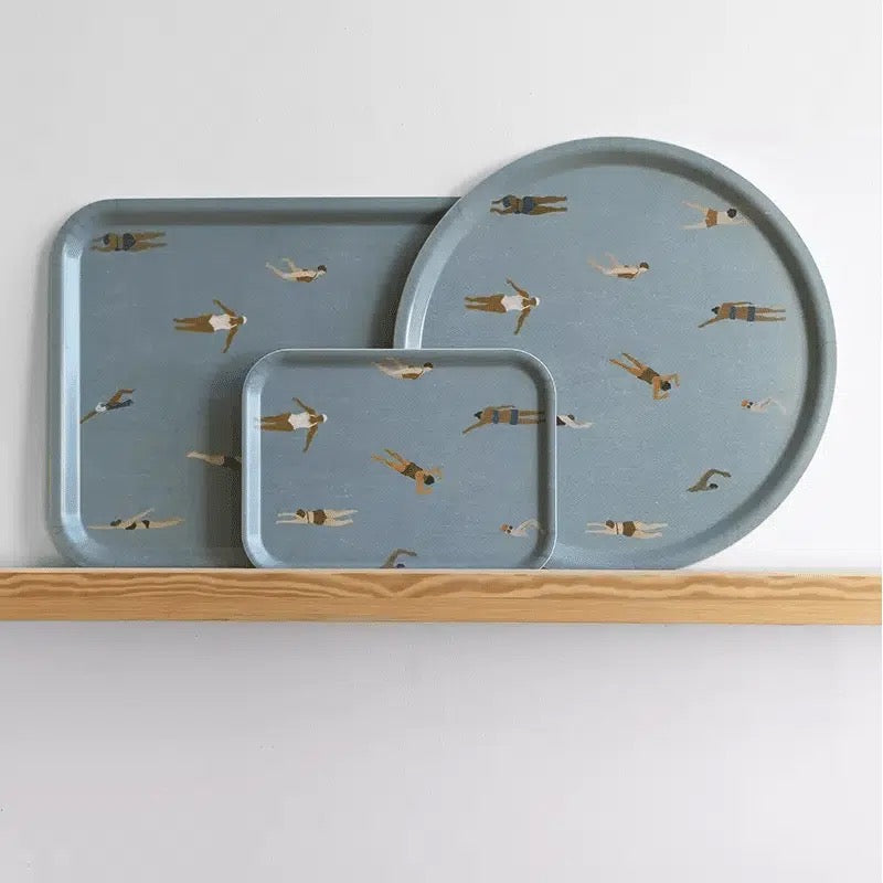 Das Swimmers Tablett 20 x 27cm von der schwedischen Marke Fine Little Day ist ein rechteckiges Tablett aus laminiertem Birkenholz mit einem humorvollen Motiv von schwimmenden Menschen in verschiedenen Positionen, entworfen von Elisabeth Dunker. Das Tablett eignet sich perfekt sowohl für Frühstück und Kaffeepause als auch zur Aufbewahrung von Ölen, Essig und Gewürzen auf der Küchenarbeitsplatte. Die Swimmers Tablett ist in verschiedenen Größen erhältlich und wird zu einem sowohl charmanten als auch praktischen Einrichtungsgegenstand.