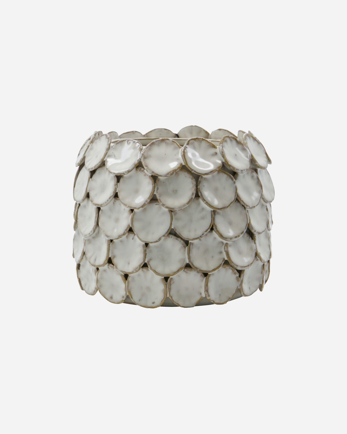 Dot von House Doctor ist eine kleine, schöne Vase aus weiß glasierter Keramik. Die kleinen, runden Dots auf der Oberfläche verleihen der Vase einen alternativen, sehr plastischen Look. Nutzen Sie sie als Designobjekt in Ihrer Einrichtung, ob einzeln oder mit frisch geschnittenen Blumen.