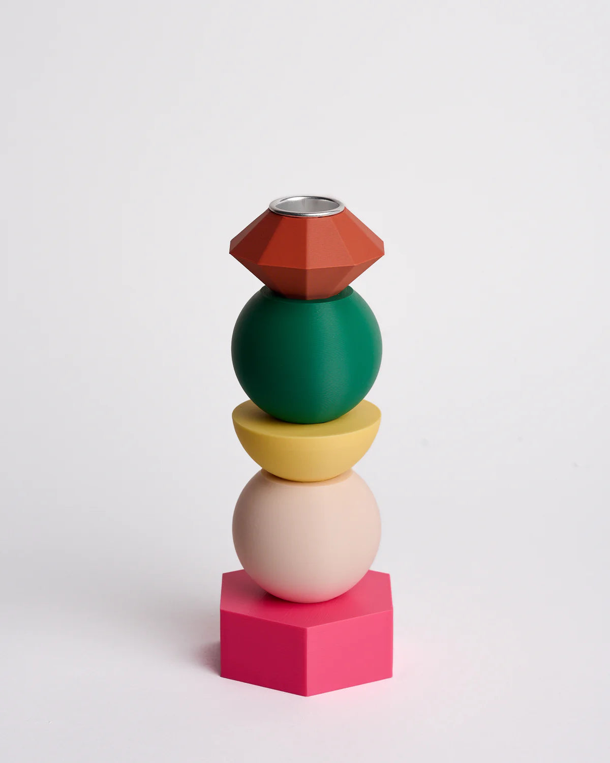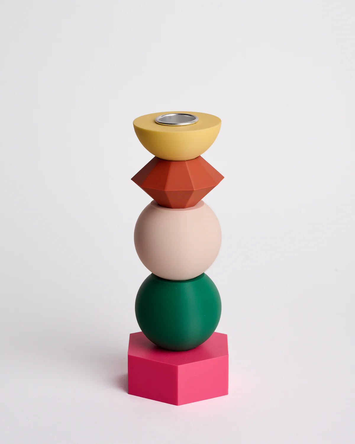 Der ANIS Kerzenhalter ist ein modulares Designobjekt, das aus mehreren frei kombinierbaren Elementen besteht. Die einzelnen Teile werden im 3D-Druckverfahren aus nachhaltigem PLA-Bioplastik gefertigt und zur zusätzlichen Stabilität mit Sand gefüllt.
