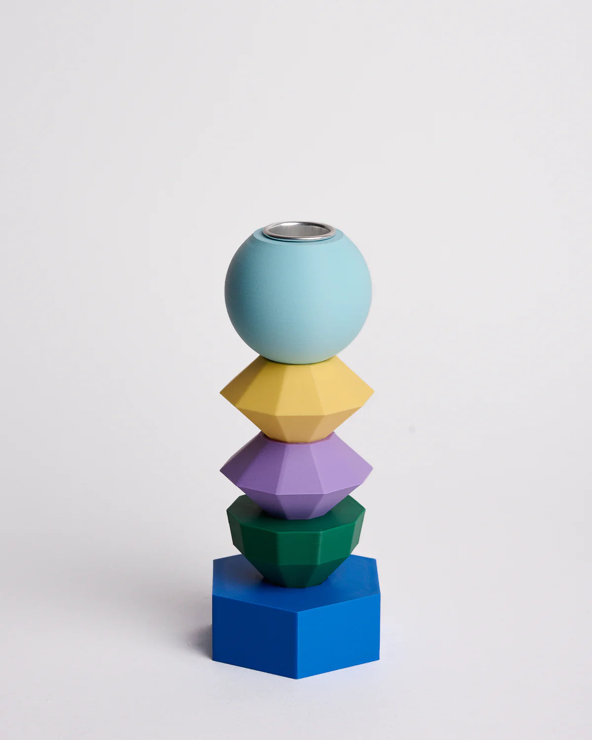 Der ANIS Kerzenhalter ist ein modulares Designobjekt, das aus mehreren frei kombinierbaren Elementen besteht. Die einzelnen Teile werden im 3D-Druckverfahren aus nachhaltigem PLA-Bioplastik gefertigt und zur zusätzlichen Stabilität mit Sand gefüllt.
