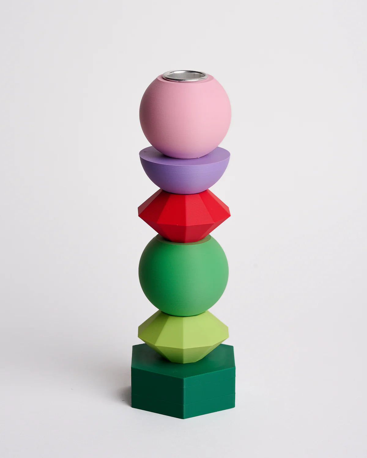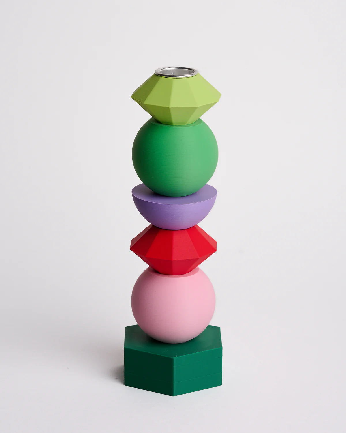 Der ANIS Kerzenhalter ist ein modulares Designobjekt, das aus mehreren frei kombinierbaren Elementen besteht. Die einzelnen Teile werden im 3D-Druckverfahren aus nachhaltigem PLA-Bioplastik gefertigt und zur zusätzlichen Stabilität mit Sand gefüllt.