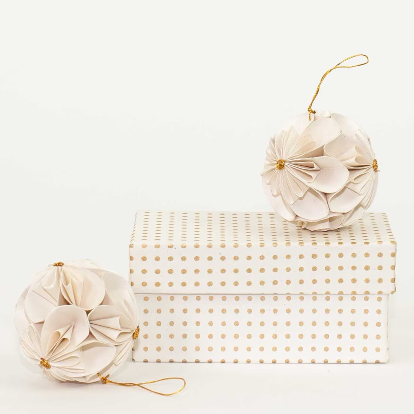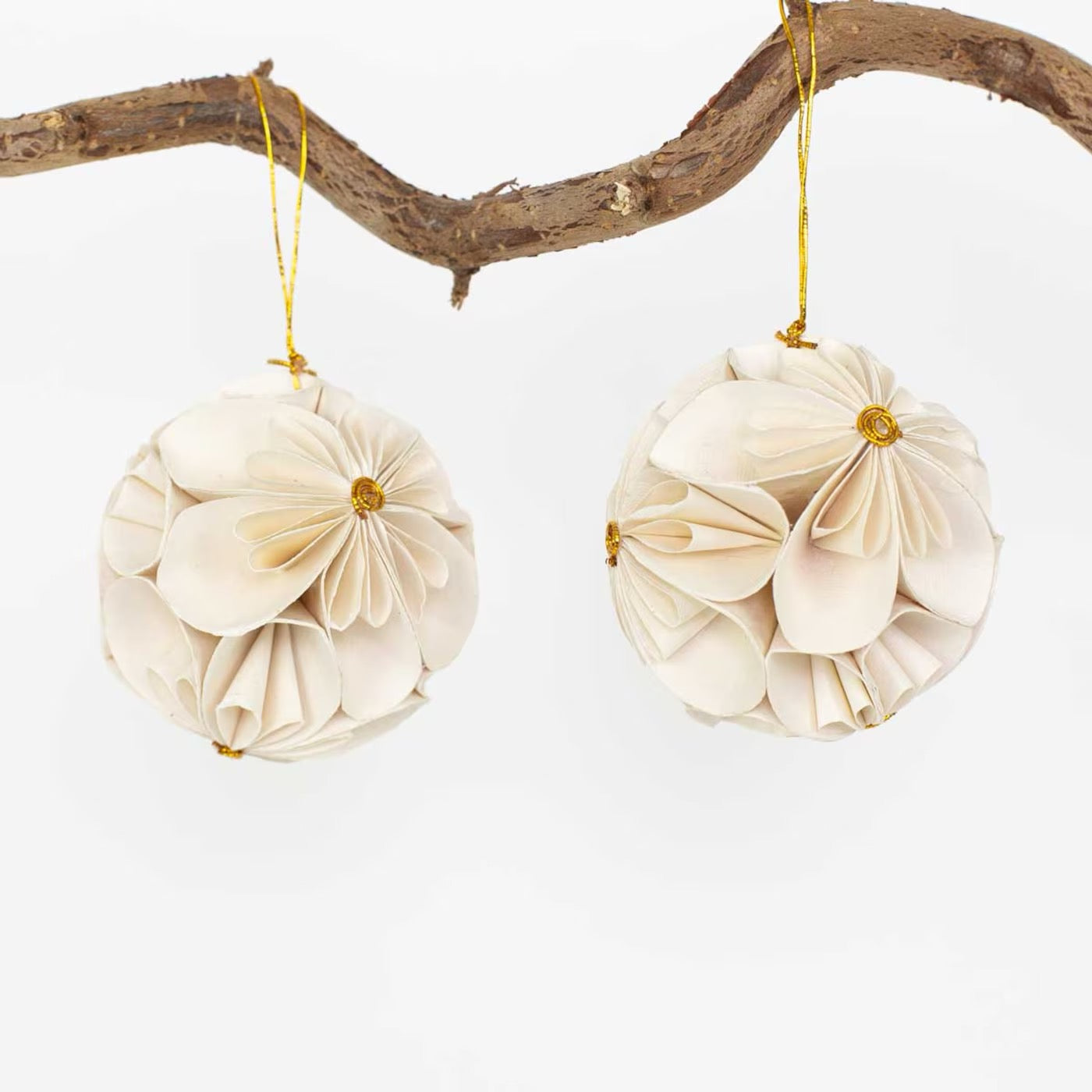 Diese zarten Flower Balls bestehen aus handgeschöpftem Baumwollpapier und werden in der kunstvollen Quilling-Technik gefertigt. Jede einzelne Papierstreifenrolle wird sorgfältig geformt und arrangiert, wodurch eine detailreiche, dreidimensionale Blüte entsteht.