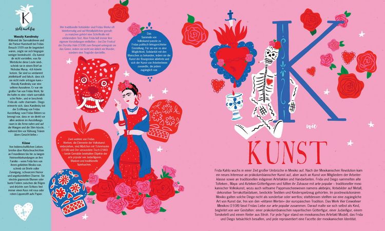Begleitet werden die unterhaltsamen, oft unbekannten Informationen von farbenfrohen Illustrationen. Dabei wird nichts ausgelassen oder geschönt: Von ihrer Lieblingsfarbe über ihre Prothesen bis zu ihrer Schmerzmittelabhängigkeit und ihrem möglichen Suizid findet sich alles in diesem Buch. Frida von A bis Z ist ein Porträt einer hochinteressanten und starken Frau, die sich früh für Selbstbestimmtheit und Gleichberechtigung ausgesprochen hat und deren Geist bis heute nachhallt. Ein Geschenkbuch, das nicht nur Frida-Kahlo-Fans und Kunstbegeisterte interessieren wird.