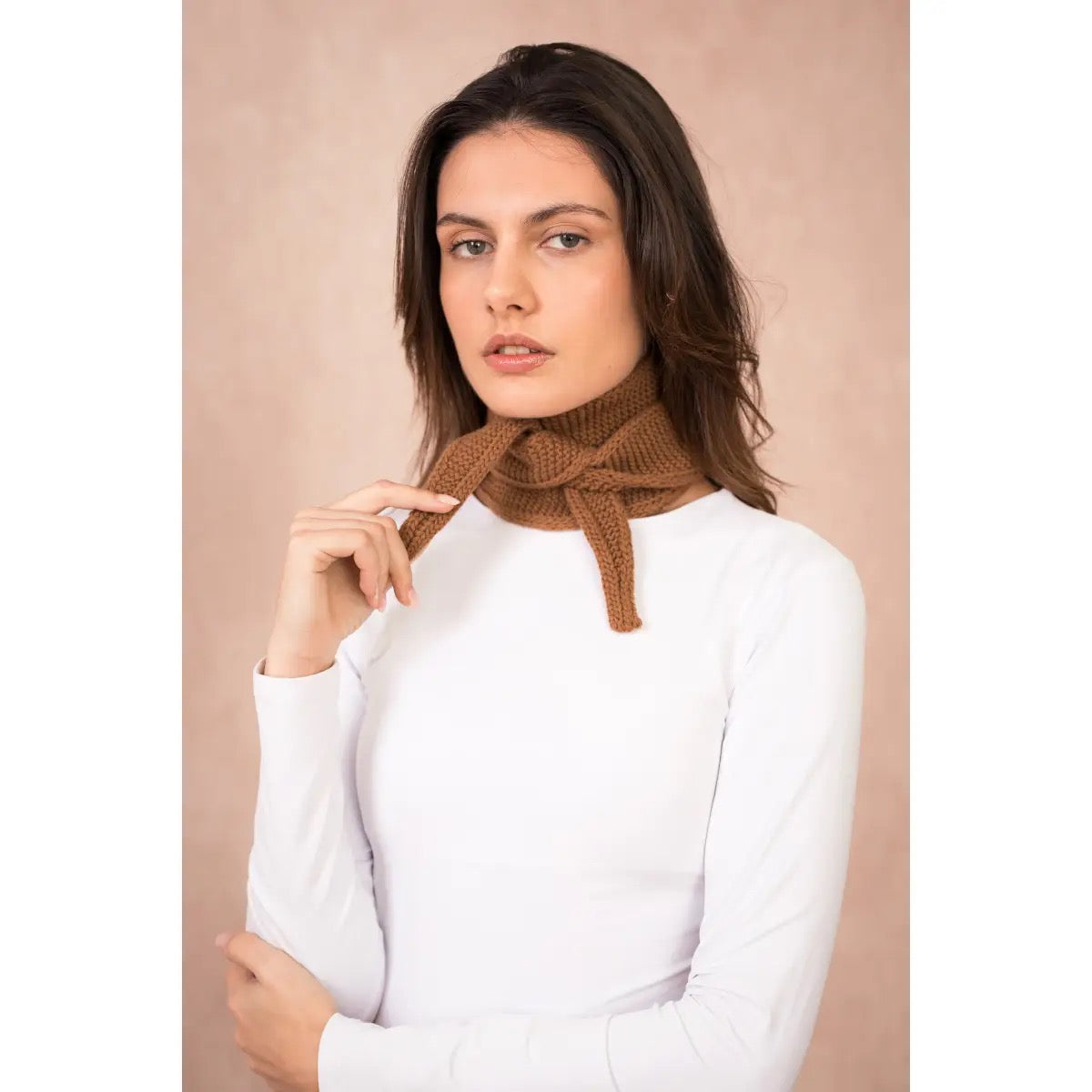 Ein wunderschöner Scarf aus Wolle der deinem Hals garantiert schmeichelt. Er wird von vorne nach hinten gelegt und dann wieder nach vorne und mit einem kleinen Knoten geschlossen. Ein hübsches Accessoir für das ganze Jahr.