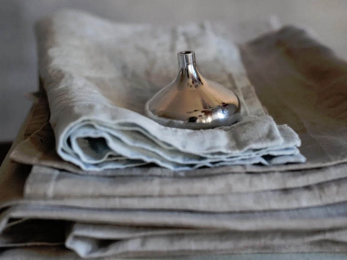 Die weiche, minimalistische Gestaltung des Aluminium Kerzenhalters fügt sich harmonisch in ein schön gedecktes Tischarrangement ein. Dieser Kerzenhalter setzt einen ansprechenden Kontrast zur warmen und weichen Beschaffenheit von Bienenwachs oder Tischwäsche.