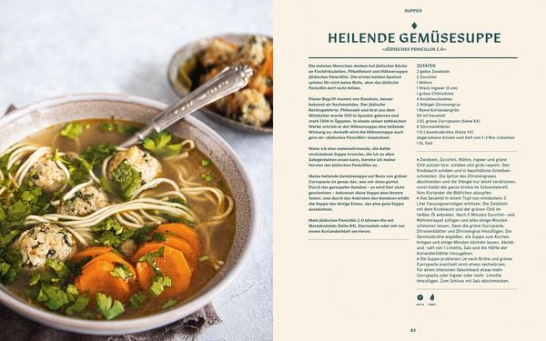 Dieses vegetarische Kochbuch vereint über 90 Rezepte mit persönlichen Geschichten, Wissen zu jüdischen Speisegesetzen, Festen und Esstraditionen und praktischen Tipps für den Alltag. In neun übersichtlich strukturierten Kapiteln finden sich beispielsweise Gerichte zum Einlegen, Braten, Backen oder für den Schabbat-Tisch. Von süßem Baba Ganoush mit Datteln über Labneh und Chremslach bis zu Matzeknödeln und Blumenkohl-Süßkartoffel-Latkes – die moderne jüdische Küche ist überraschend, bunt und voller Geschmack. Viele Gerichte stammen aus Esthers eigener Familie oder sind von ihren Reisen inspiriert. Die vegetarischen Rezepte sind alltagstauglich und verständlich erklärt – ein modernes jüdisches Kochbuch, das in keiner Küche fehlen darf!