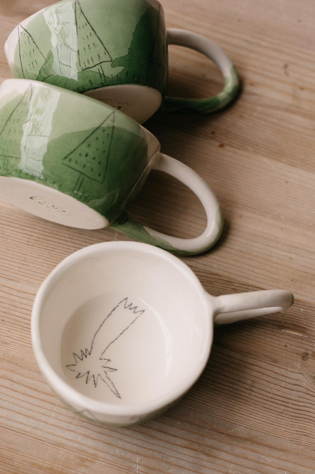 Jede Tasse ist ein Einzelstück und wird von den Abbildungen sowohl in der Form abweichen, als auch im Dekor.